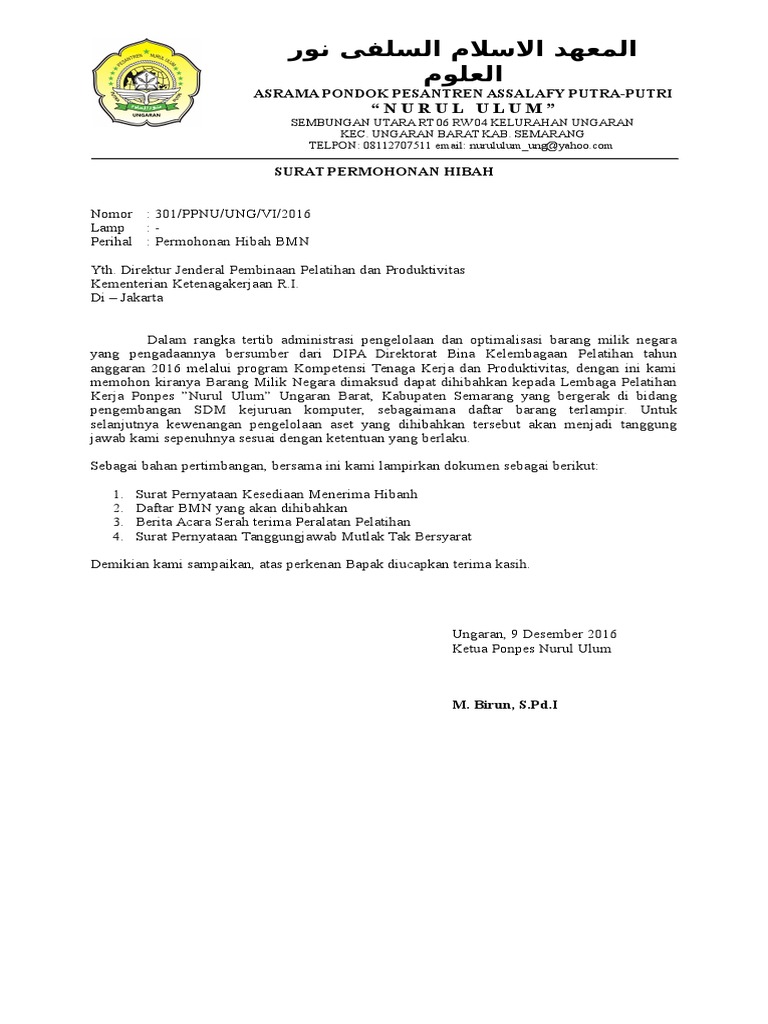 Contoh Surat Bantuan Hibah - Addison Web